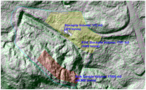 Figure 3 – Bulk Sample Area at Juby Deposit – Plan showing Extraction Area highlighted in brown